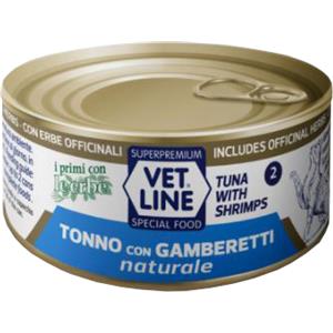 Vet Line Tonno con Gamberetti Naturale 70g - Alimento Umido per Gatti Senza Coloranti e Conservanti