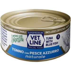 Vet Line Alimento Umido per Gatti - Tonno con Pesce Azzurro Naturale 70g, Senza Coloranti e Conservanti