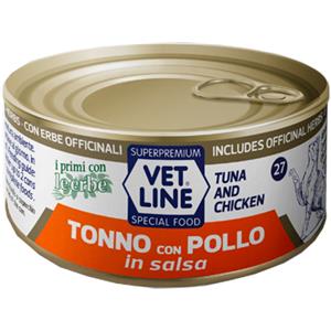 Vet Line Alimento Umido per Gatti - Tonno e Pollo in Salsa 70g con Erbe Officinali
