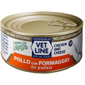 Vet Line Alimento Complementare per Gatti - Pollo con Formaggio in Salsa 70g, Ricco di Proteine e Erbe Officinali
