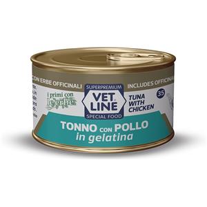 Vet Line Alimento Umido per Gatti - Tonno e Pollo in Salsa 70g con Erbe Officinali