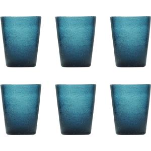 Memento Set 6 Bicchieri Acqua in Vetro Soffiato Deep Blue 250ml - Design Pulegoso Senza Gambo