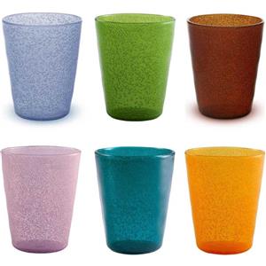 Memento Set 6 Bicchieri Acqua Colorati in Pasta di Vetro 250ml Fatti a Mano