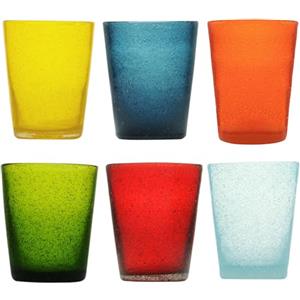 Memento Set 6 Bicchieri Acqua Colorati in Pasta di Vetro 250ml Fatti a Mano