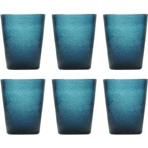 Memento Set 6 Bicchieri Acqua in Vetro Soffiato Deep Blue 250ml - Design Pulegoso Senza Gambo