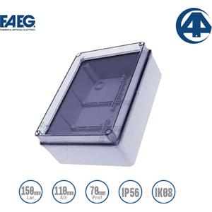 FAEG Scatola Stagna di Derivazione Rettangolare 150x110x70mm con Coperchio Trasparente e Viti in Metallo - IP56
