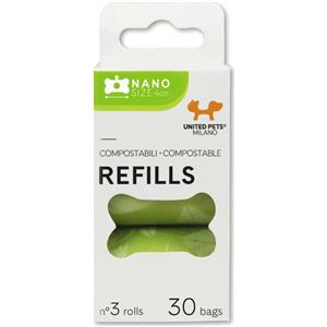United Pets Ricariche Sacchetti Igienici Biodegradabili Verde - 3 Rotoli da 10 Sacchetti per Dispenser Bon Ton Nano
