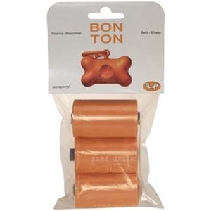 United Pets Ricarica Sacchetti Biodegradabili Arancio per Dispenser Bon Ton - Confezione da 3 Rotoli da 10 Sacchetti