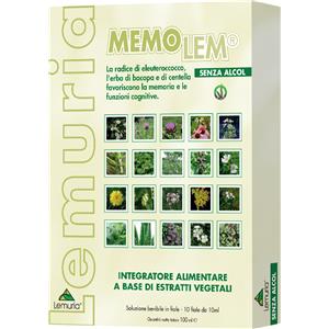 LEMURI@ - Memolem - Integratore Alimentare per la Memoria - 10 Flaconcini da 10 ml con Estratti Vegetali