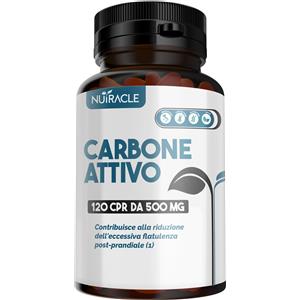 Nutracle Carbone Attivo Vegetale 120 compresse da 500mg - Integratore per Gonfiore Addominale e Gas Intestinale