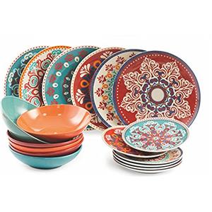 Excelsa Galateo Servizio Piatti 18 Pezzi in Porcellana per 6 Persone con Decorazioni Old Stile