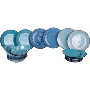 Villa d'Este Home Tivoli VDE 1996 Servizio piatti 18 pezzi in gres, 6 posti tavola diversi, Baita Acqua Ocean, 5907301