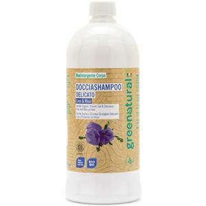 Greenatural Doccia Shampoo Lino e Proteine del Riso 1 LT - Nutriente e Delicato per Tutta la Famiglia
