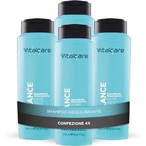 Vitalcare | Sebo Balance - Shampoo Riequilibrante, Shampoo per Capelli Grassi o Tendenti ad Ingrassare, con Vitamine e Zjcomplex, 4 x 500 ml