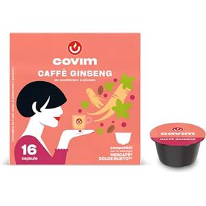 COVIM ESPRESSO LIFE Covim Caffè - Capsule per Bevanda Gusto Caffè e Ginseng, Preparato Solubile, 48 Capsule Monodose (3x16 pz), Compatibili con Nescafé Dolce Gusto, Senza Glutine