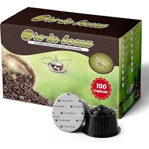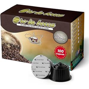 Oro in Bocca 100 Capsule di Caffè Compatibili con Nescafé Dolce Gusto, Miscela Oro Espresso Misto Arabica, Gusto Intenso e Cremoso, Corpo Pieno, Tostatura Italiana, Made in Italy (100, Oro)