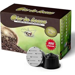 Oro in Bocca 300 Capsule di Caffè Compatibili con Nescafé Dolce Gusto, Miscela Oro Espresso Misto Arabica, Gusto Intenso e Cremoso, Corpo Pieno, Tostatura Italiana, Made in Italy (300, Oro)