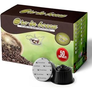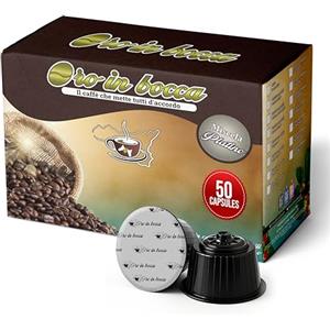 Oro in Bocca 50 Capsule di Caffè Compatibili con Nescafé Dolce Gusto, Miscela Oro Espresso Misto Arabica, Gusto Intenso e Cremoso, Corpo Pieno, Tostatura Italiana, Made in Italy (50, Oro)
