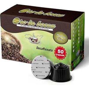 Oro in Bocca 50 Capsule Caffè Decaffeinato Compatibili con Nescafé Dolce Gusto, Caffè Espresso Decaffeinato 70% Arabica 30% Robusta, Gusto Morbido e Bilanciato, Aroma Dolce, Made in Italy (50, DEK)