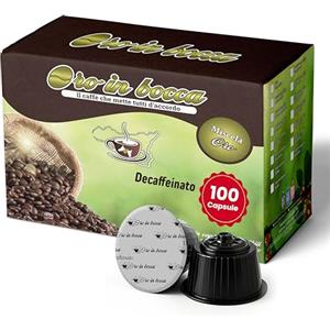 Oro in Bocca 100 Capsule Caffè Decaffeinato Compatibili con Nescafé Dolce Gusto, Caffè Espresso Decaffeinato 70% Arabica 30% Robusta, Gusto Morbido e Bilanciato, Aroma Dolce, Made in Italy (100, DEK)