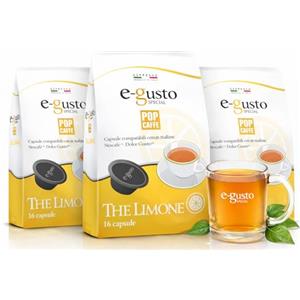 Generico 48 POP CAFFE Dolce Gusto THE LIMONE Capsule compatibili con Dolce Gusto Nescafe - 3 Sacchetti da 16 Capsule POP CAFFE E-GUSTO TE al LIMONE -