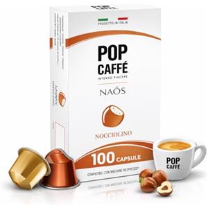 POP CAFFE' POP Caffè Capsule Compatibili con Nespresso Nocciolino - 100 Capsule Caffè Aromatizzato alla Nocciola, Espresso Dolce e Cremoso