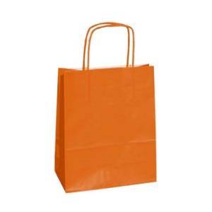 Mainetti Bags Shopper Twisted Arancio - Carta Kraft 90gr con Maniglie Cordino - 18x8x24 cm - Confezione da 25 pezzi
