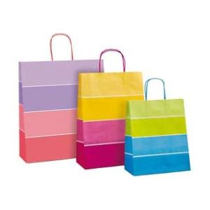 Rex Sadoch Shopper Bicolor - Manici in Carta Ritorta - 16x8x21 cm - Colori Assortiti - Confezione da 25 Pezzi