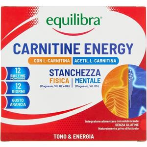 Equilibra Carnitina Energy - Integratore Energizzante con L-Carnitina, Magnesio e Vitamine B, Gusto Arancia, 12 Bustine