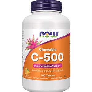 Now Foods Vitamina C-500 mg Compresse Masticabili 100 cpr Gusto Arancia - Supporto Immunitario e Antiossidante