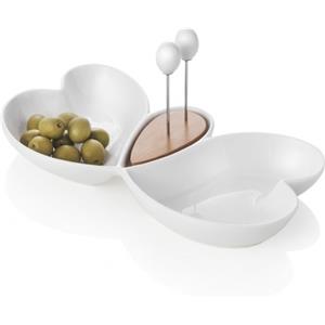 Brandani Antipastiera Cuor di Butterfly 28x14cm in Porcellana e Bamboo con 2 Forchettine in Acciaio Inox