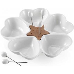 Brandani Antipastiera Mille Cuori in Porcellana Bianca e Bamboo con 5 Forchettine in Acciaio Inox