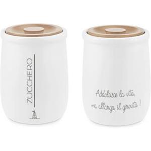 La Porcellana Bianca Barattolo Zucchero 0.8L con Tappo in Legno di Quercia - Collezione Gli Onesti