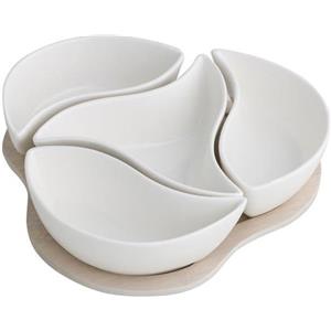 Brandani Antipastiera Trifoglio in Porcellana Bianca con Base in Bamboo - 21 x 19 cm