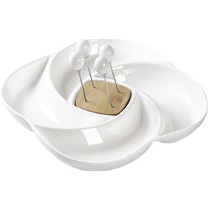 Brandani Antipastiera Girella in Porcellana e Bamboo con 4 Forchettine in Acciaio Inox - 24x24 cm