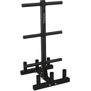 Toorx Rastrelliera verticale porta dischi bumper e bilancieri - 6 manicotti di carico, 4 porta bilancieri, dimensioni 70x70x140,5 cm in Pesistica
