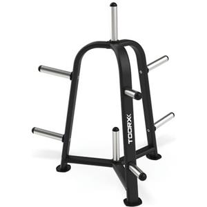 Toorx Rastrelliera verticale porta dischi bumper e bilancieri - 6 manicotti di carico, 4 porta bilancieri, dimensioni 70x70x140,5 cm