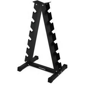 TOORX Rastrelliera Porta Manubri Professionale - 6 Coppie, Struttura Triangolare, Colore Nero, Dimensioni 72x52xH107 cm
