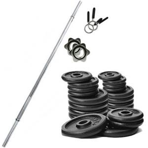 TOORX PROMO PACK - Bilanciere in acciaio cromato 150 cm con fermadischi inclusi + Pacco pesi di dischi in ghisa da 52 kg