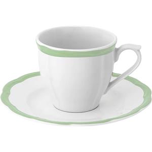BITOSSI HOME Tazza Caffè con Piattino Petalo Verde - Set di 6 Tazzine in Ceramica Ironstone con Bordo Smerlato