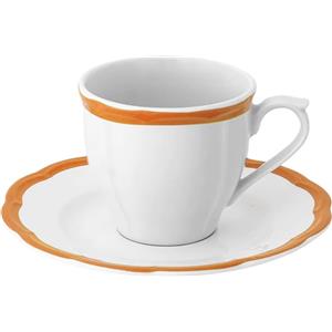 BITOSSI HOME Set 6 Tazzine da Caffè Petalo con Piattino, Ceramica Ironstone Bianco/Ocra, Bordo Smerlato
