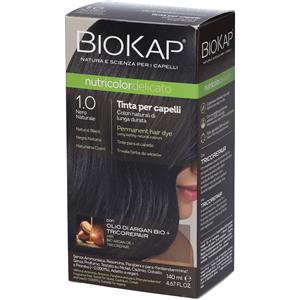 BIOKAP Nutricolor Delicato, Tinta capelli senza ammoniaca che rende i capelli morbidi e lucenti, Colorazione capelli con colori naturali, 140 ml (1.0 Nero Naturale)
