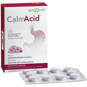 BIOS LINE Calmacid - Integratore Alimentare 40 Tavolette Masticabili con Calcio Carbonato, Riso Nero, Camomilla e Malva per il Controllo dell'Acidità Gastrica