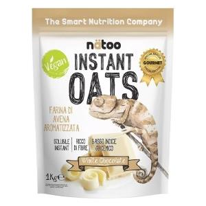 NATOO Farina di Avena Aromatizzata Cioccolato Bianco 1kg - Instant Oats, Basso Indice Glicemico, Solo 1g di Zuccheri