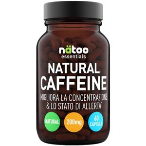NATOO ESSENTIALS NATURAL CAFFEINE - Integratore di Caffeina Naturale 200 mg in Capsule, 60 cps per Energia e Concentrazione