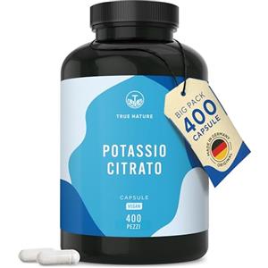 TRUE NATURE® Citrato di Potassio - 400 Capsule Vegane, 800 mg Potassio per Giorno, Senza Additivi