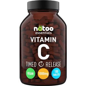 NATOO ESSENTIALS VITAMIN C TIMED RELEASE - 1000 mg, 180 compresse, Integratore a rilascio graduale per il sistema immunitario