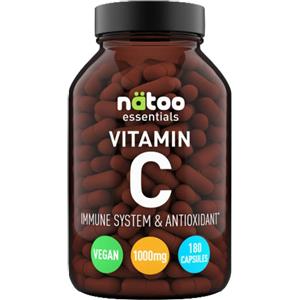 NATOO ESSENTIALS VITAMIN C 1000mg - Integratore in capsule vegetali da 180, supporta il sistema immunitario