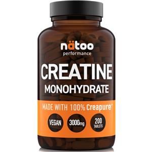 Natoo Performance Creatine Monohydrate - 200 Compresse da 750 mg di Creatina Monoidrata Creapure® per Migliorare le Prestazioni Fisiche