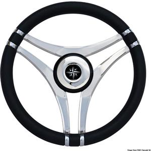 Osculati Volante C Inox/Nero 350 mm con Razze in Acciaio Inox e Corona in Poliuretano Morbido